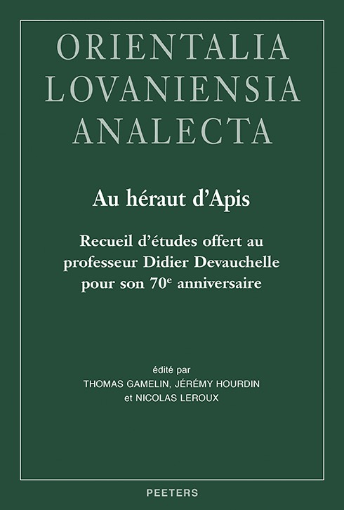 | DEVAUCHELLE D. (Mélanges) Au héraut d'Apis. Recueil d'études offert au professeur Didier Devauchelle pour son 70e anniversaire. Edités par Gamelin T., Hourdin J., Leroux N. OLA 325 XXXVI-729 p, 18 x 25 cm, relié LOUVAIN 2025 Réf : 19707 Prix : 260.00 € Commander |